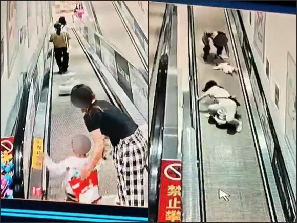 นาทีช็อก รถของเล่นพุ่งลงบันไดเลื่อน ชนแม่-ทารก 5 เดือนล้มฟาด ต้นเรื่องโนสนโนแคร์
