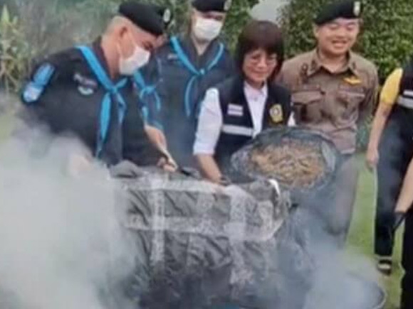 เผากัญชา 1 ตัน ทำลายของกลางสิ้นหลังจากคดีสิ้นสุด คนแซวเห็นภาพแล้วระวังยิ้มหน้าบาน