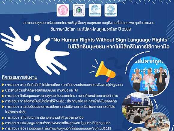 ร่วมสร้างโลกแห่งความเท่าเทียมในงานวันภาษามือโลกและสัปดาห์คนหูหนวกโลก 68 วันที่ 27-28 ก.ย.