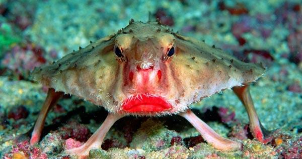 ปลาค้างคาวปากแดง สัตว์โลกจอมเบะปากแดงแจ๋จากใต้ทะเล